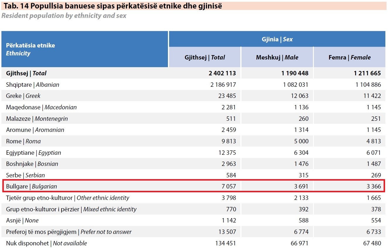 Според официалните данни българско население в Албания е 7057 души, а за македонци се самоопределят едва 2281 души. Това доведе до нова драма за Скопие и обвинения към България, че асимилира македонците в Албания. И като се има предвид, че над 200 хиляди македонци имат български документи за самоличност – значи претопяваме коренното население на Земята от две страни – от запад (Албания) и от изток (България).